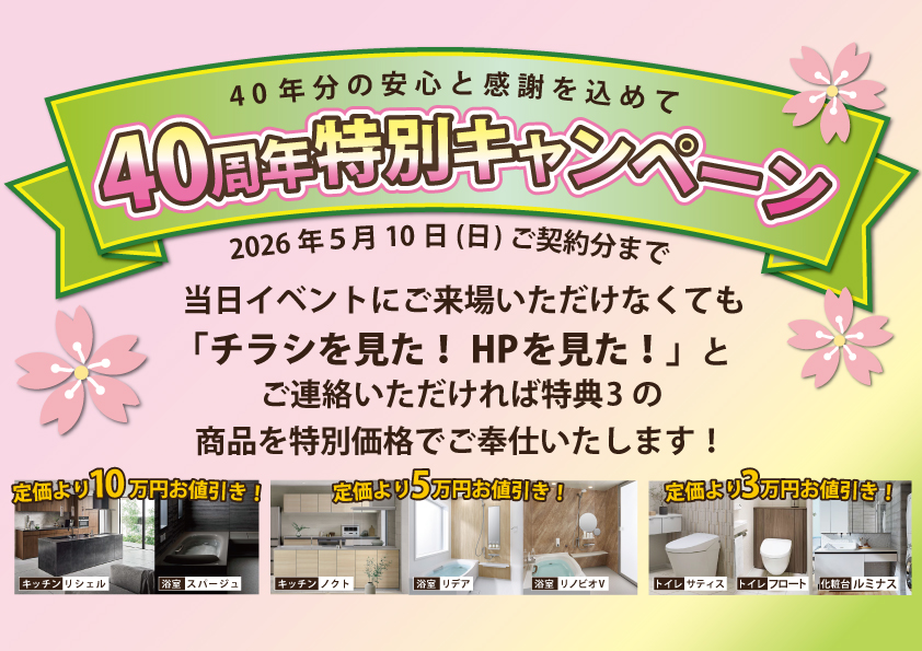 日頃のご愛顧に感謝して、昨年ご好評をいただきました「感謝祭」を「創業40周年感謝祭」と 題して開催いたします。